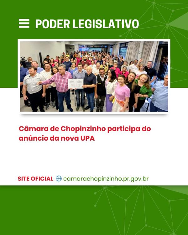 Câmara de Vereadores de Chopinzinho participa do anúncio oficial da nova Unidade de Pronto Atendimento (UPA)