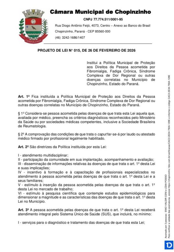 1ª votação do Projeto de Lei Ordinária nº 15 de 2026