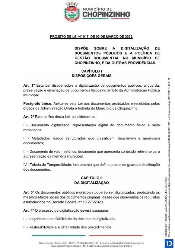 1ª votação do Projeto de Lei Ordinária nº 17 de 2026