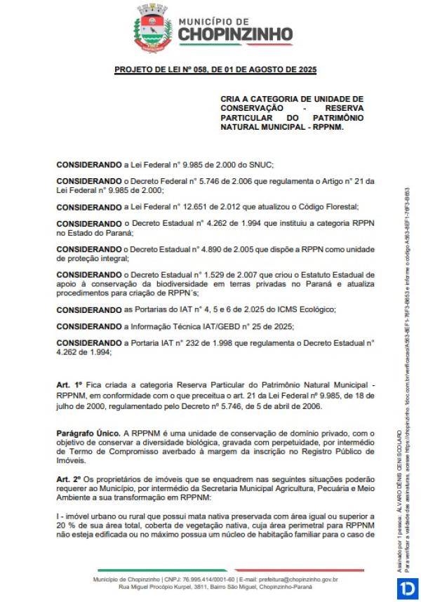 1ª votação do Projeto de Lei Ordinária nº 58 de 2025