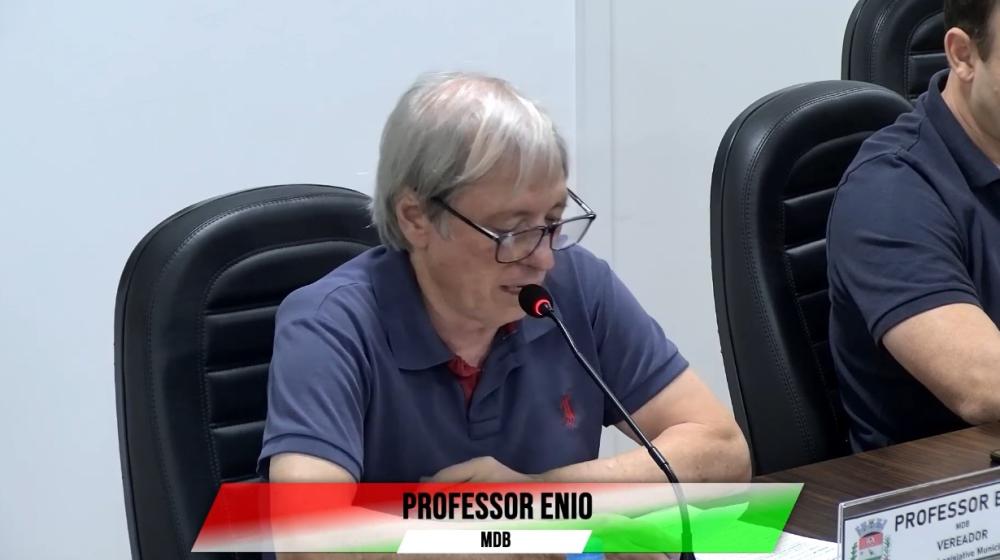 Durante sua manifestação, o vereador Professor Enio Ceni destacou projetos em andamento no município, com ênfase na área da saúde, mencionando a futura implantação de um pronto atendimento 24 horas.