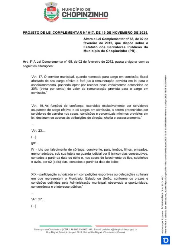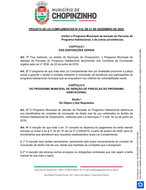 1ª votação do Projeto de Lei Complementar nº 19 de 2025