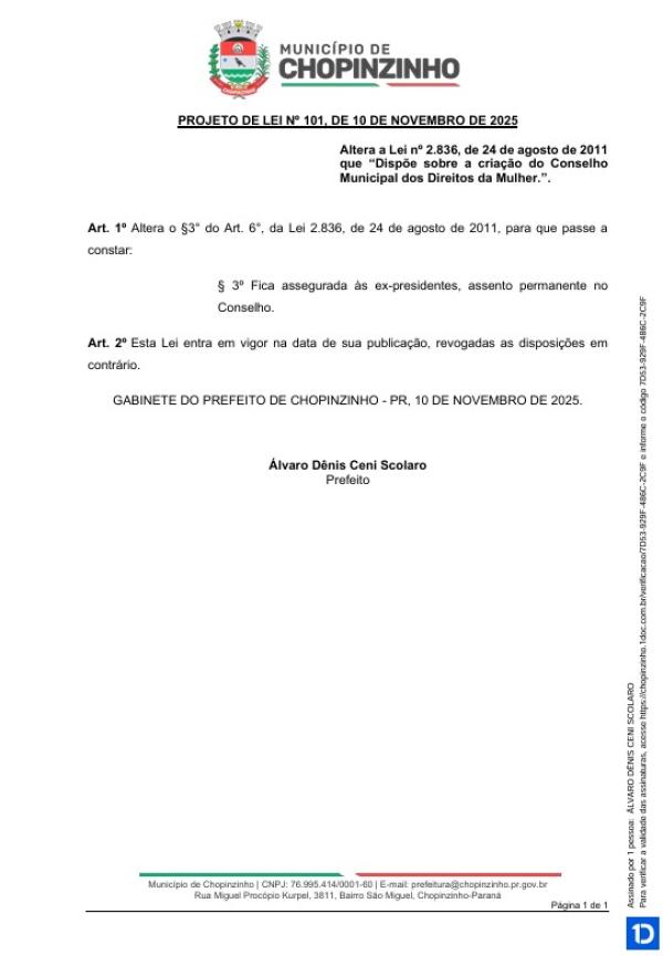 1ª votação do Projeto de Lei Ordinária nº 101 de 2025