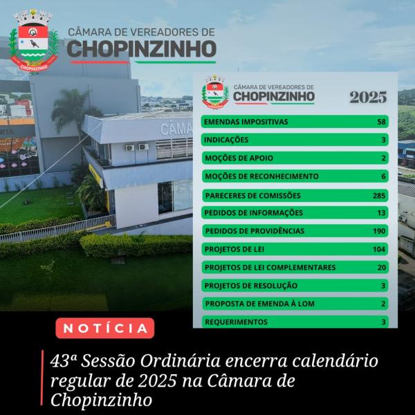 43° Sessão Ordinária encerra calendário regular de 2025 na Câmara Municipal de Chopinzinho