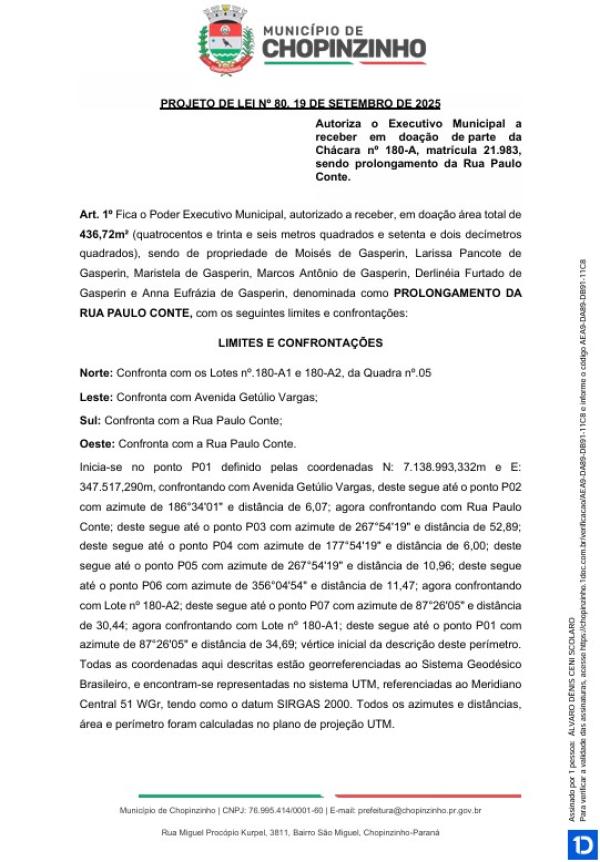 1ª votação do Projeto de Lei Ordinária nº 80 de 2025