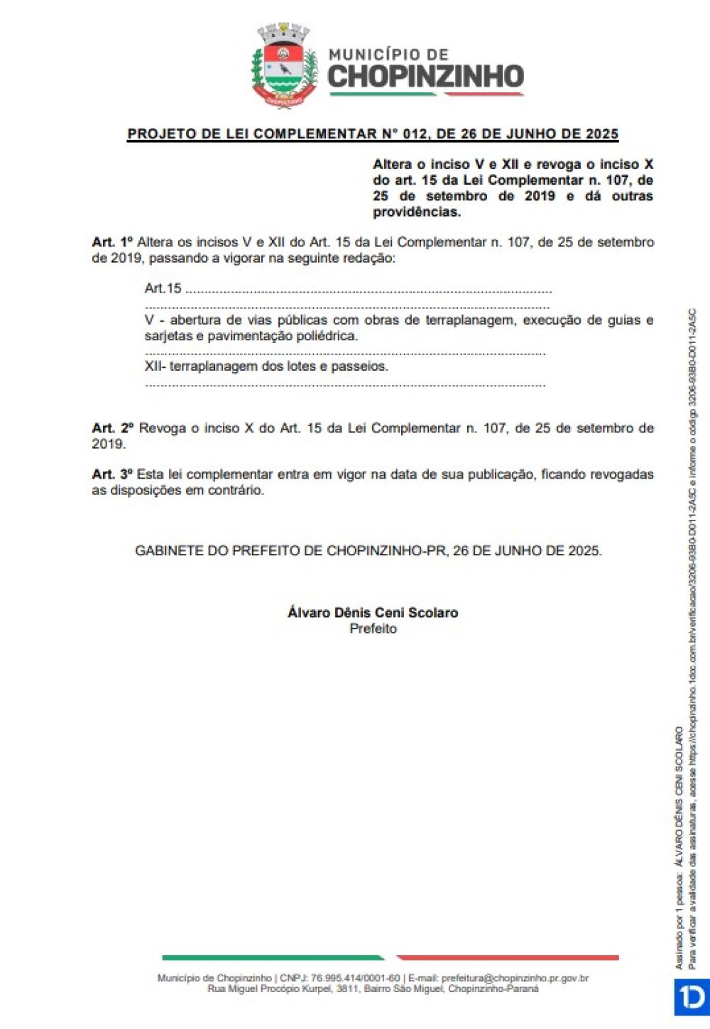 1ª Votação do Projeto de Lei Complementar nº 12 de 2025