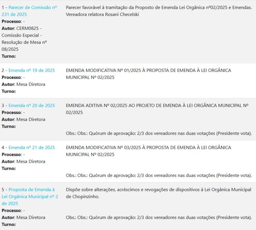 Votação das Emendas e Proposta de Emenda à Lei Orgânica Municipal nº 02/2025