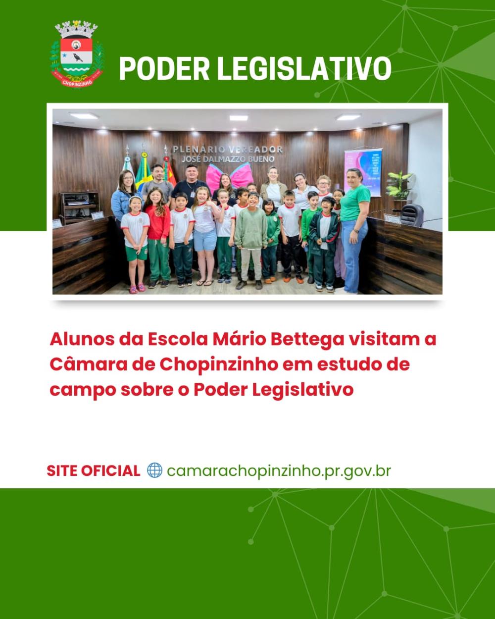 Na manhã desta quarta-feira, 5 de novembro, a Câmara Municipal de Chopinzinho recebeu os alunos do 3º ano da Escola Mário Bettega – Núcleo Santa Inês para uma visita de estudo sobre o funcionamento do Poder Legislativo.