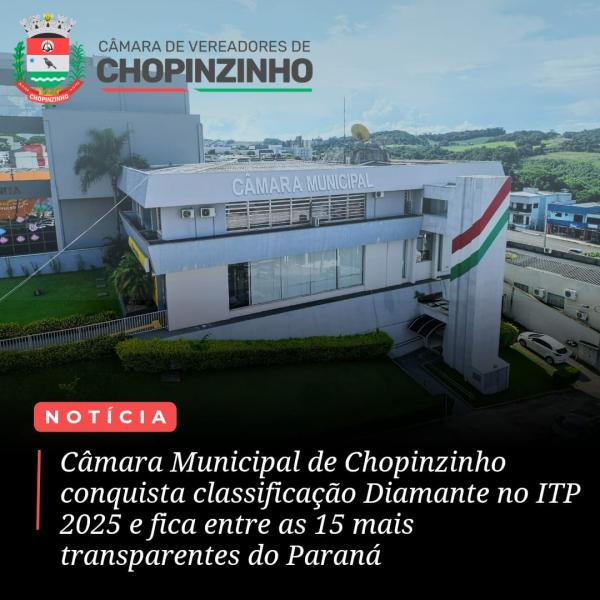 Câmara Municipal de Chopinzinho alcança resultado de destaque no Índice de Transparência da Administração Pública (ITP) 2025