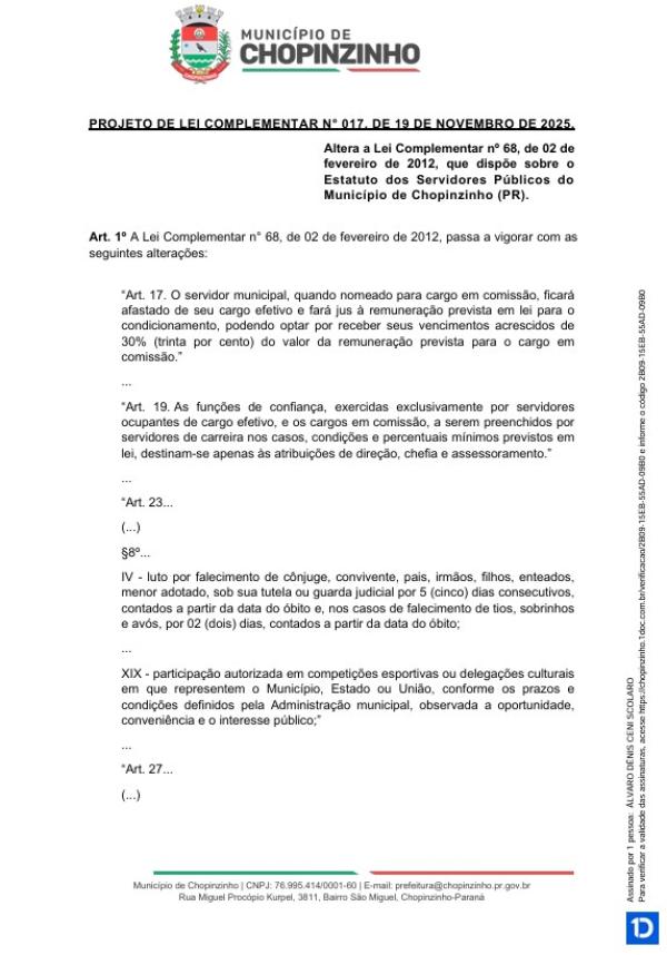 1ª votação do Projeto de Lei Complementar nº 19 de 2025