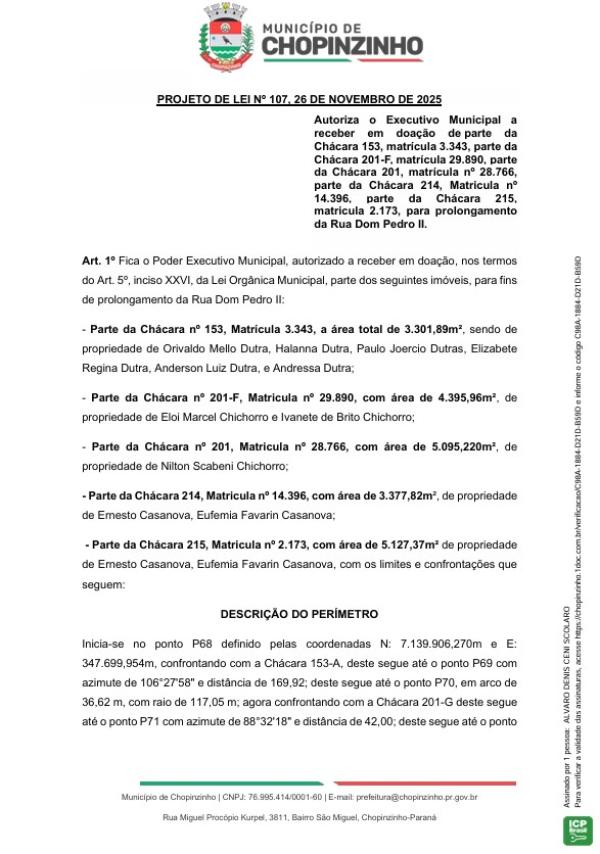Votação única do Projeto de Lei Ordinária nº 107 de 2025