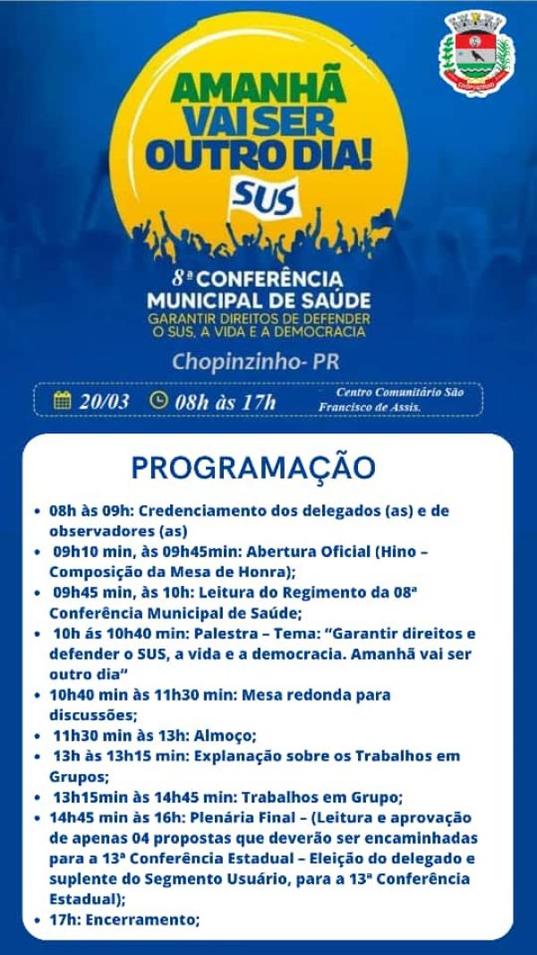 LEGISLATIVO DE CHOPINZINHO PARTICIPARÁ ATIVAMENTE DA 8ª CONFERÊNCIA MUNICIPAL DE SAÚDE