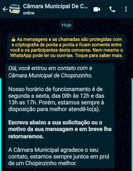 Legislativo Municipal lança canal no WhatsApp para atender a População
