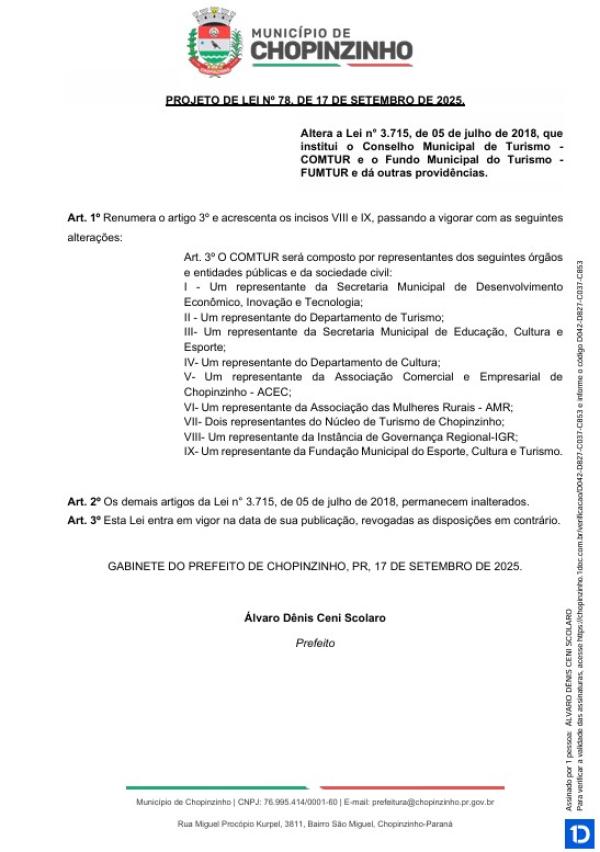 1ª votação do Projeto de Lei Ordinária nº 78 de 2025