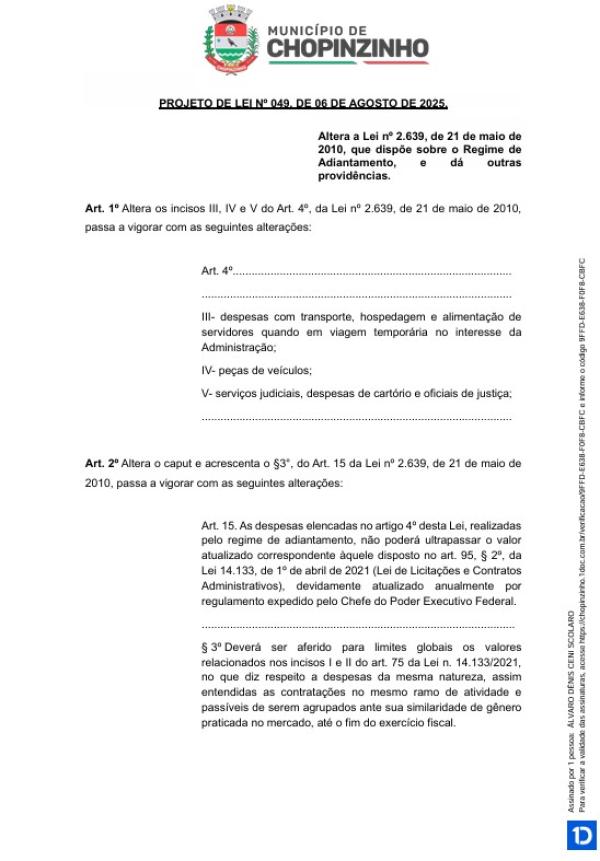 1ª votação do Projeto de Lei Ordinária nº 49/2025