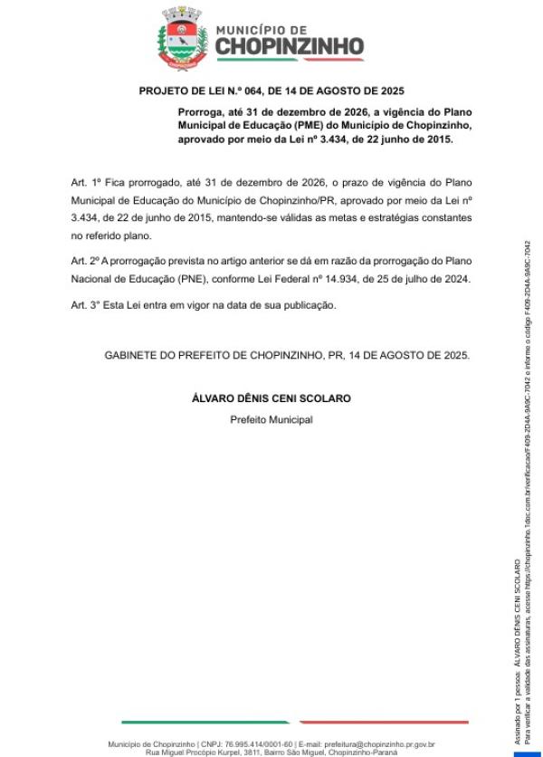 1ª votação do Projeto de Lei Ordinária nº 64/2025
