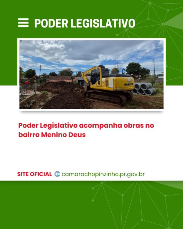 O Poder Legislativo de Chopinzinho acompanha obras no bairro Menino Deus.