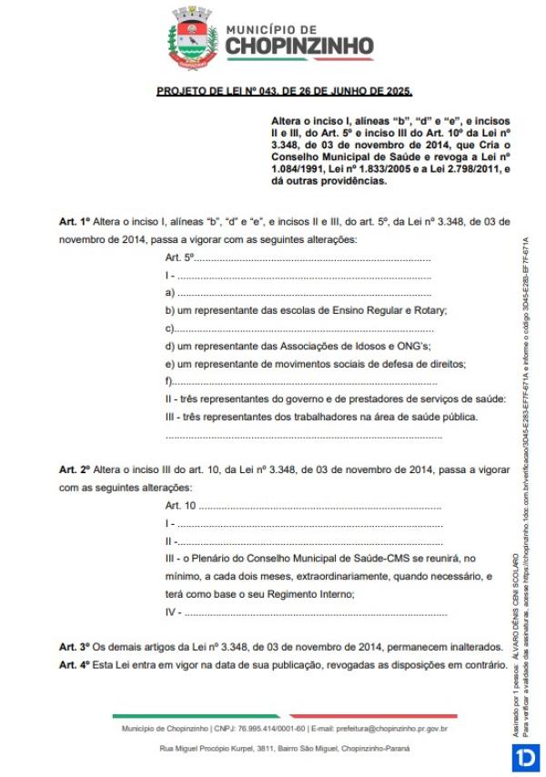 1ª votação do Projeto de Lei Ordinária nº 43 de 2025