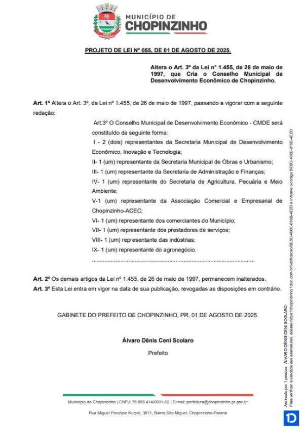 1ª votação do Projeto de Lei Ordinária nº 55 de 2025