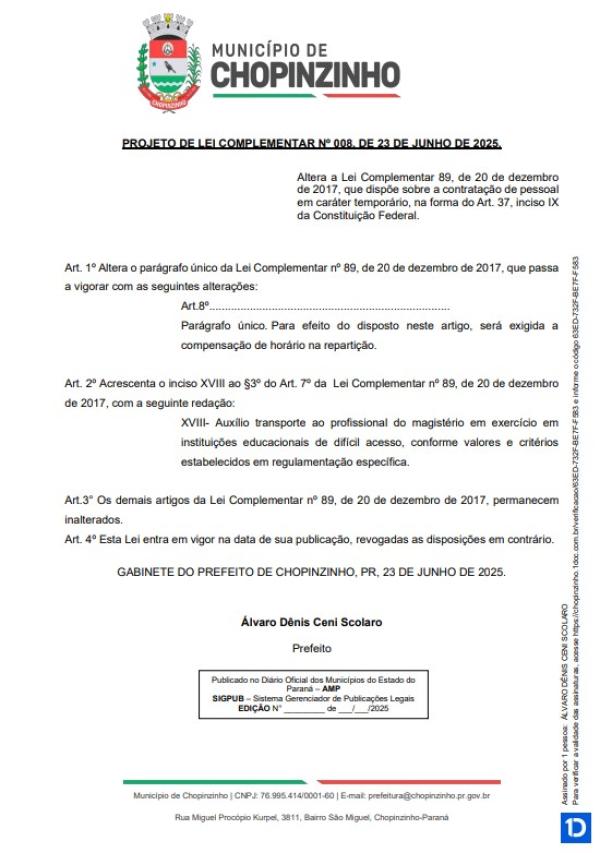 1° apreciação do Projeto de Lei Complementar nº 8 de 2025