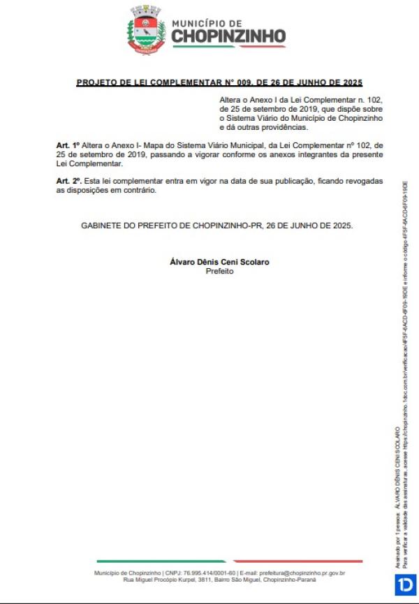 1ª apreciação do Projeto de Lei Complementar nº 9 de 2025