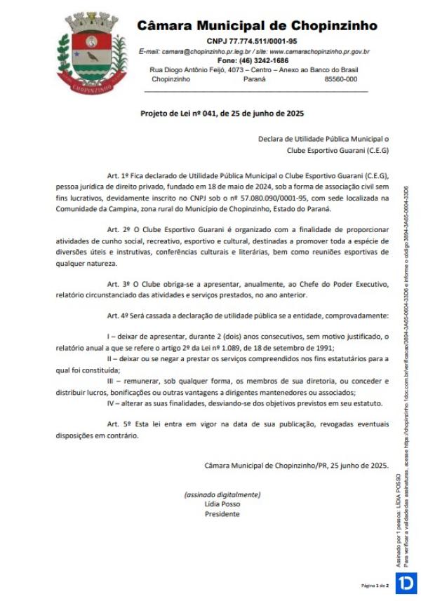2ª Votação do Projeto de Lei Ordinária nº 41 de 2025