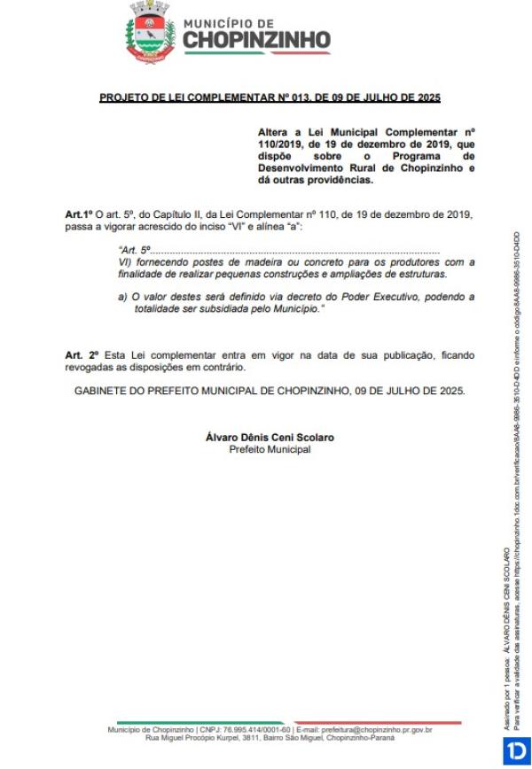 1ª Votação do Projeto de Lei Complementar nº 13 de 2025
