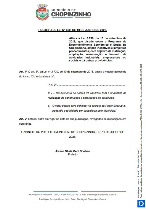 1ª votação do Projeto de Lei Ordinária nº 50 de 2025
